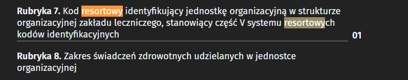 a. Dla Przychodni / Zakład leczniczy - kod V znajduje się w księdze rejestrtowej ośrodka (RPWDL2) w sekcji "Kod resortowy identyfikujący jednostkę organizacyjną w strukturze organizacyjnej zakładu leczniczego, stanowiący część V systemu resortowych kodów identyfikacyjnych". Przykładowy widok: